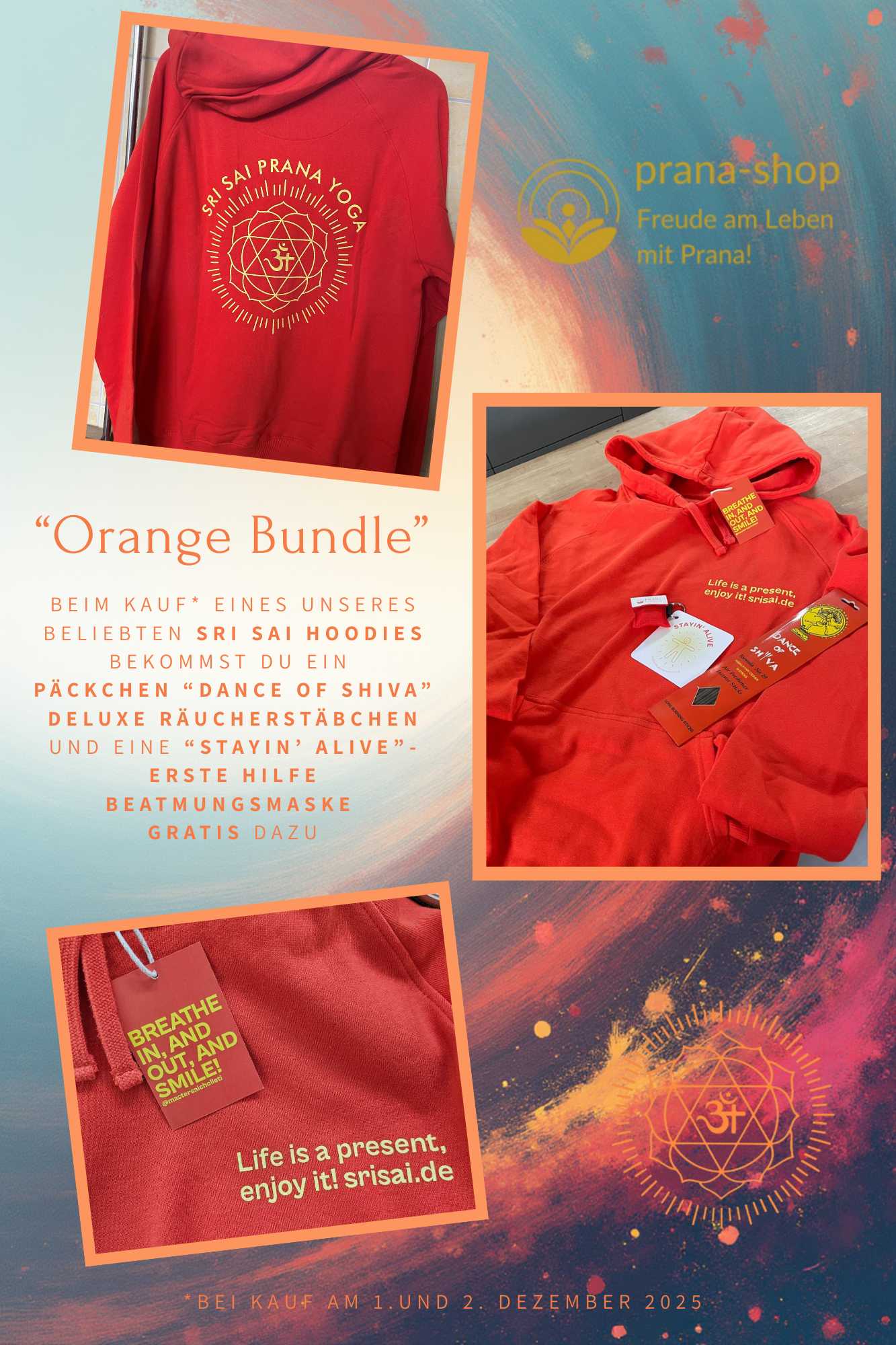 Unser beliebter Sri Sai Hoodie im kräftigen Orange bringt nicht nur Farbe in die Wintertage – er kommt heute im tollen „Orange Bundle“ zu dir.